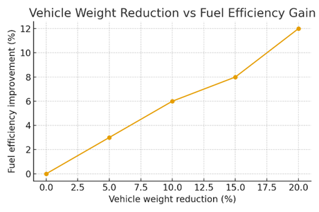 Replacing steel with polymer composites can cut component weight by up to 50%. This translates directly into efficiency: a 10% lighter vehicle delivers a 6–8% fuel economy improvement.
