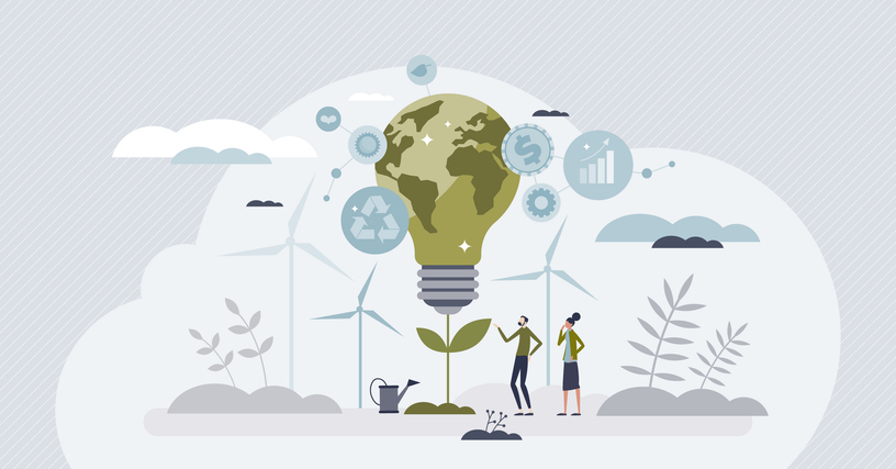 ESG or environmental social governance finance investing tiny person concept. Corporate policies and standards with sustainable, green and nature friendly business strategies vector illustration.